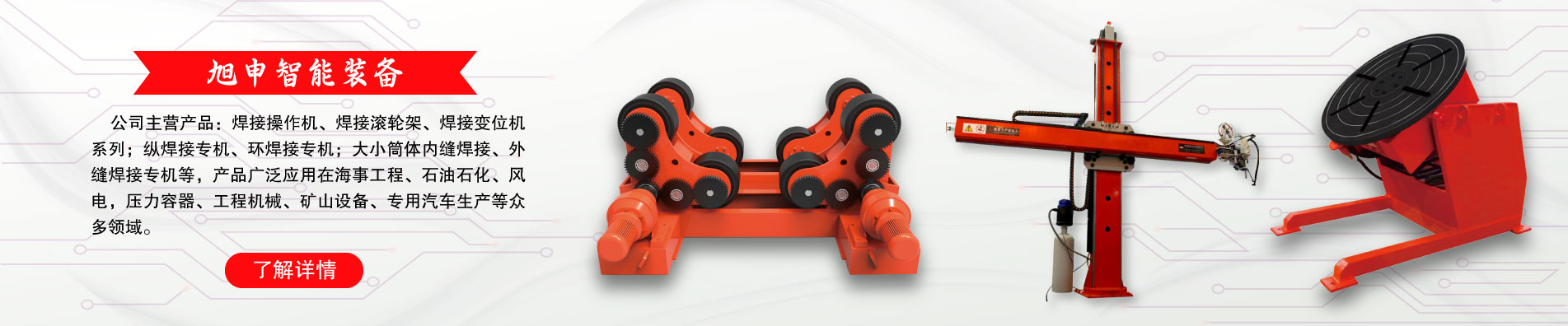 作為焊接自動化裝備與涂裝設備的專業制造商,旭申公司始終堅持“細節決定成敗,誠信鑄就未來”的經營理念,做一流產品,創一流品牌。 旭申裝備將攜手旭申石化、旭申農業等關聯公司一道,產業報國、造福社會,為新時代的裝備制造、節能環保做出應有的貢獻。